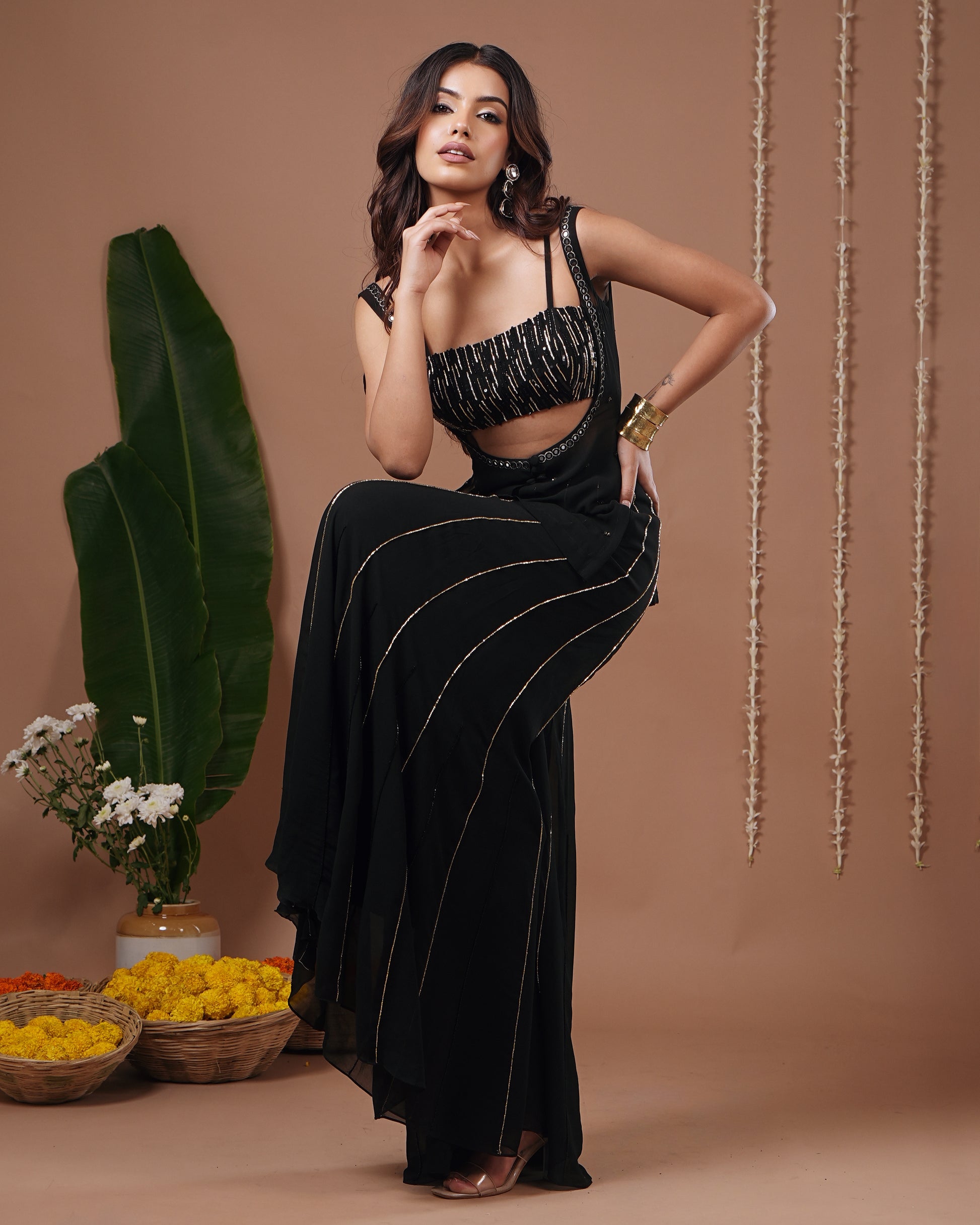 Black Georgette Heavy Indo Set (Set of 3)